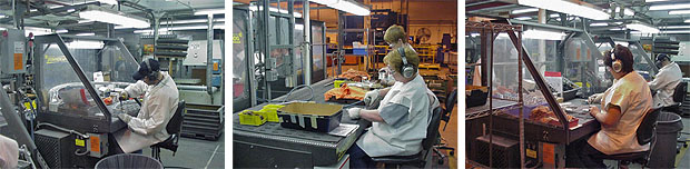 Diversitech installed four 2'x4' downdraft tables with extended front overhangs (EO) so that operators could be comfortably seated at the table. Two 3'x 6' and 3'x 8' tables were also installed. All tables were equipped with explosion proof motors as specified by the clients Health & Saftey Specialists. Plexiglass side walls were also added to achieve optimum performance while still allowing good visibility on the table worksurface.